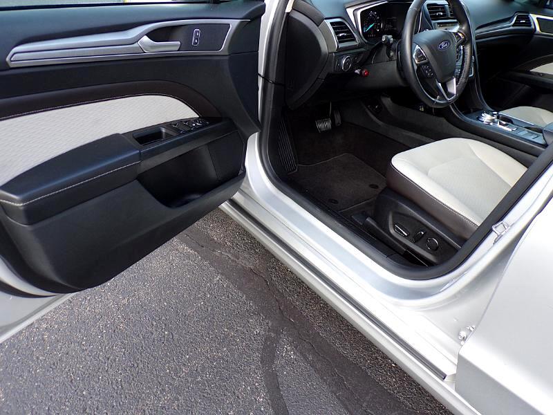 Very Nice 1 Owner SE w/Optional Equipment Group 151A. Has SE Appearance Package. Fully equipped including 10-way power driver seat and 6-way power passenger seat, push-button start, auto start/stop technology w/on-off switch, 8" multi-function color touchscreen, voice activation, Apps control, AM/FM/CD/MP3/Satellite radio, SYNC3, 4G Wi-Fi network, telematics, Apple CarPlay and Android Auto compatible, text to speech/speech to text, Bluetooth, (2) smart charging USB ports, (2) 12V power points, auto dimming rearview mirror, backup camera, reverse sensing system, automatic climate control w/separate driver and front passenger controls, rain sensing wipers, lane keeping system, blind spot info, pre-collision assist w/AEB, one-touch windows, leather wrapped tilt/telescopic steering wheel w/touch controls, LED signature lighting, automatic headlights, automatic high beam, fog lights, daytime running lights, power mirrors, anti-theft system, perimeter alarm, lighted vanity mirrors, 8 total cupholders, split folding rear seat w/fold-down center console and cupholders, clock, compass, trip computer, tachometer, outside temperature, TPMS, service interval indicator, AdvanceTrac stability control, traction control, hill holder, front, front side, side curtain and knee airbags, Latch child safety system, chrome exhaust tip, capless fuel fill, rear spoiler, carpeted floor mats, carpeted trunk mat, black aluminum wheels and more.